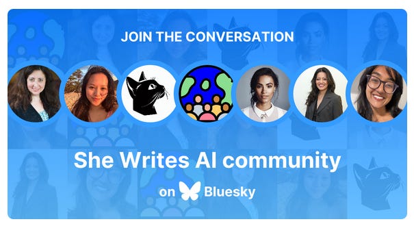 You can also find SheWritesAI on Bluesky - find and follow us there. We also have a SheWritesAI Starter Pack on Bluesky: